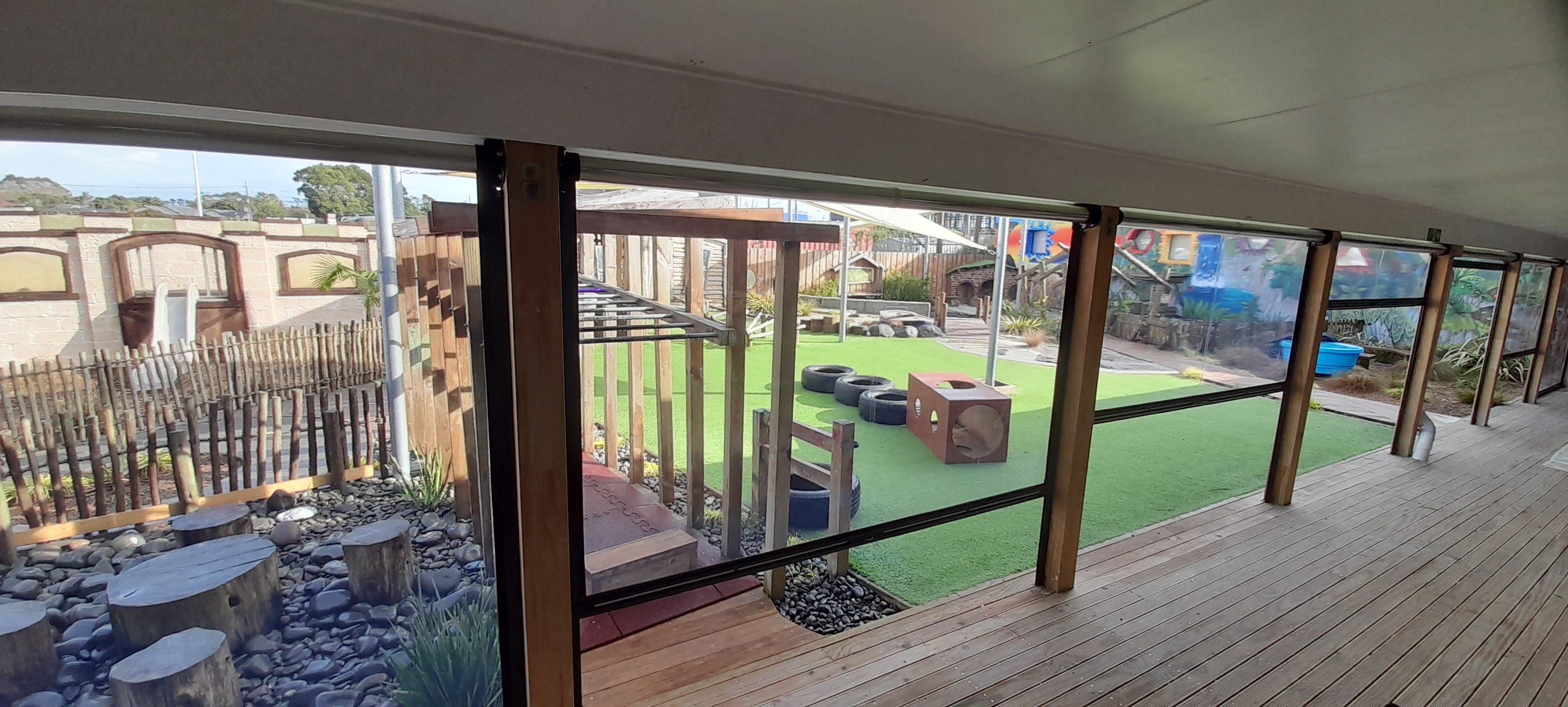 Drop awnings are a simple, inexpensive way to add extra dry space to your outdoor area. Drop awnings can be rolled down and handled easily and efficiently. Drop awnings will also offer protection from the wind and rain. Drop awnings, patio curtains and outdoor blinds are made from high quality PVC fabric. A perfect solution for schools,kindergartens, day-care centres, cafes or even residential decks. A variety of fabrics that can offer privacy and are available for all your drop awning solutions.